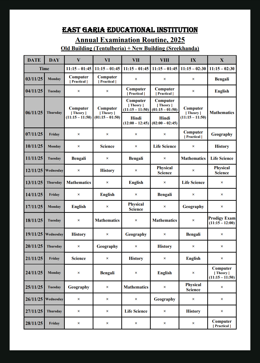| 28-Oct-2025 | Annual exam Routine 2025 | Annual Examination Routine for Class [V - IX] and Test Examination Routine for Class [ X ] |
